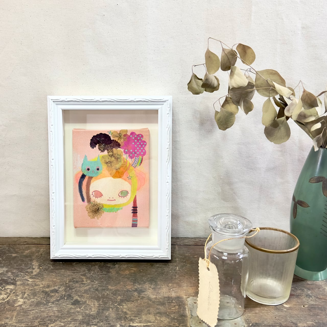 押し花アートアクリル画「キミの思いがあふれているよ。」(額入り)