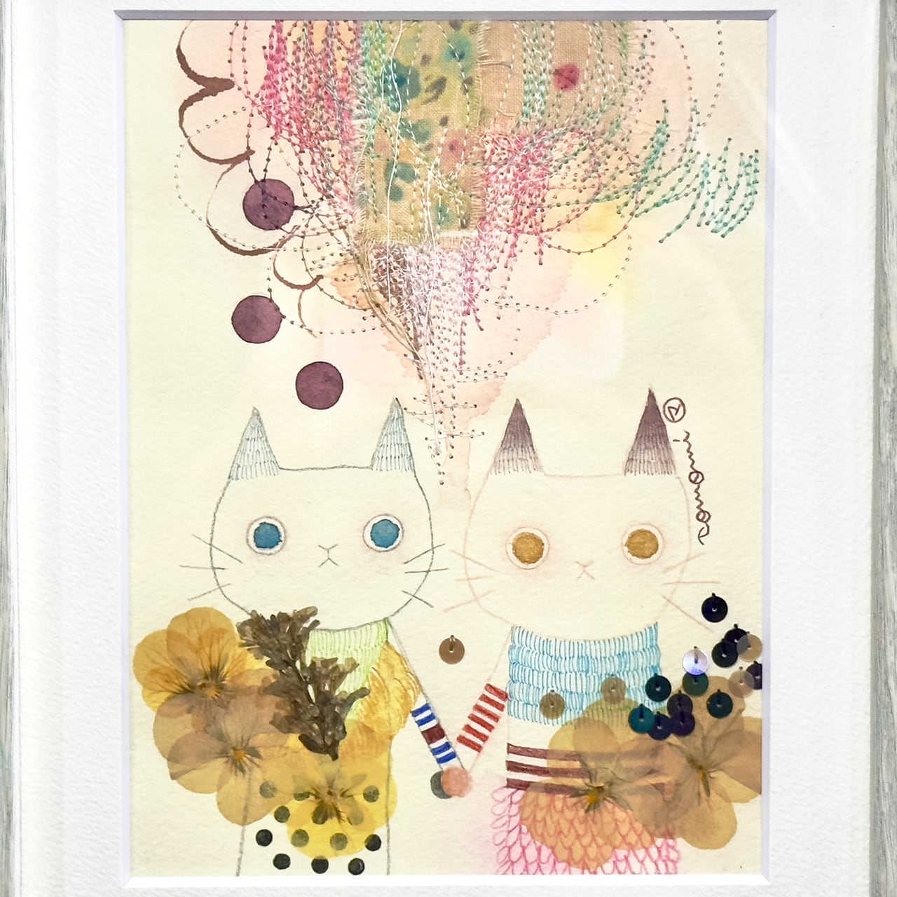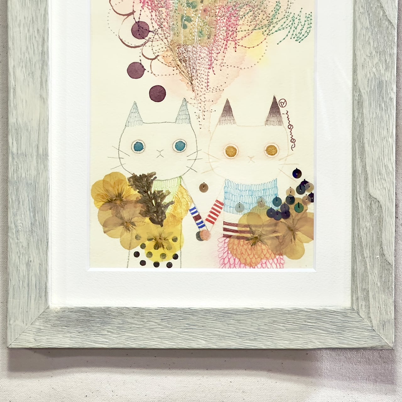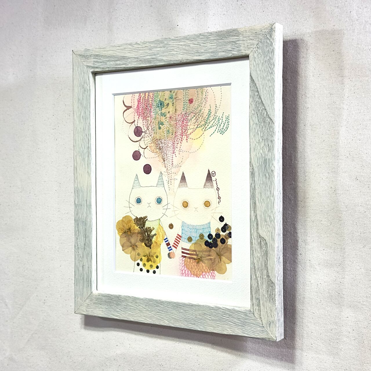 押し花アート水彩画「仲良しなふたり。」(額入り)