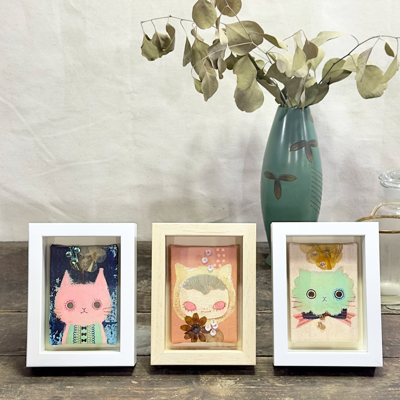 手のひらサイズのミニキャンバス作品。