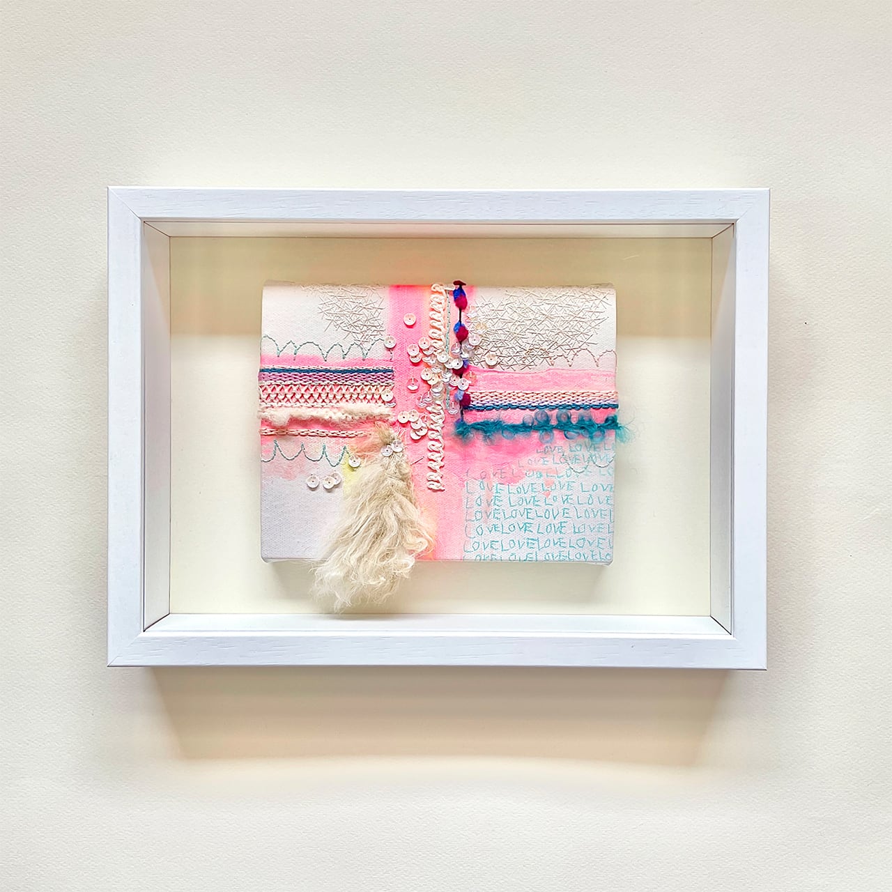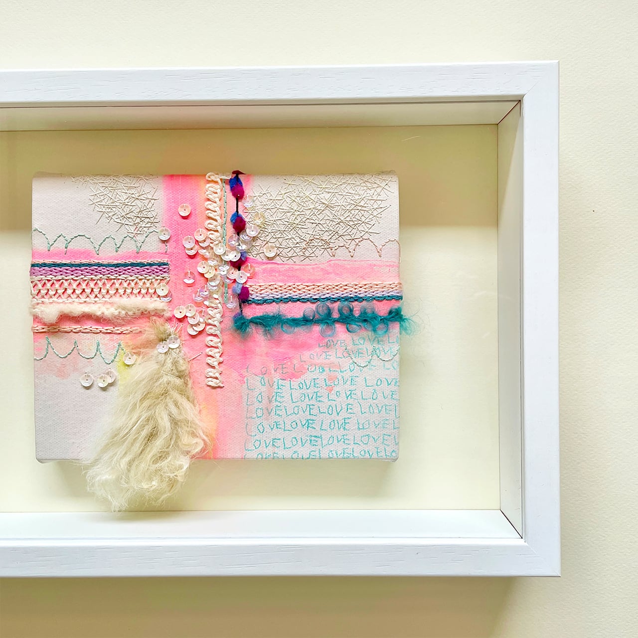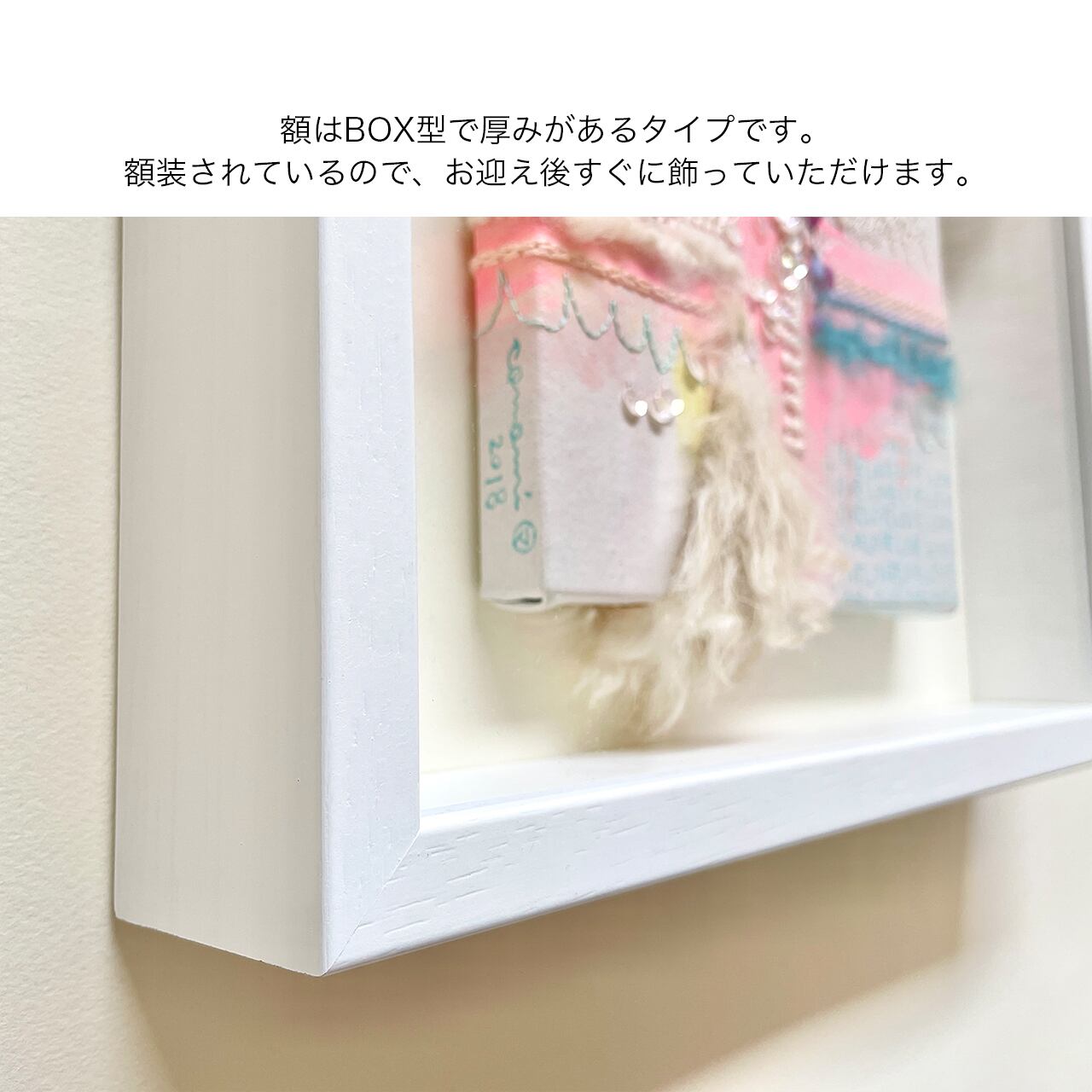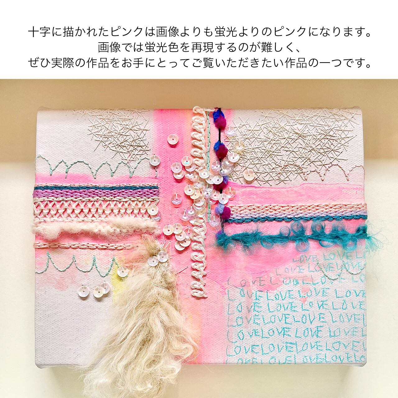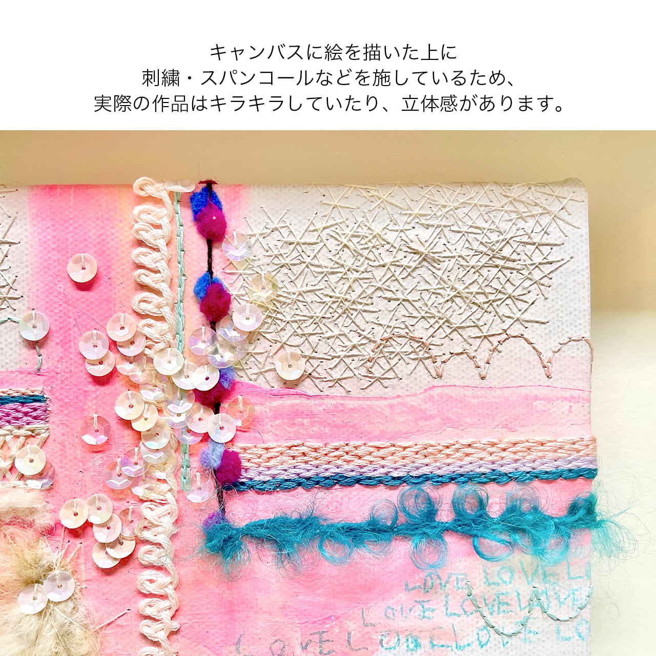 手刺繍入り絵画「キミを守るおまもりのひとつ。愛と虹」(額付き)