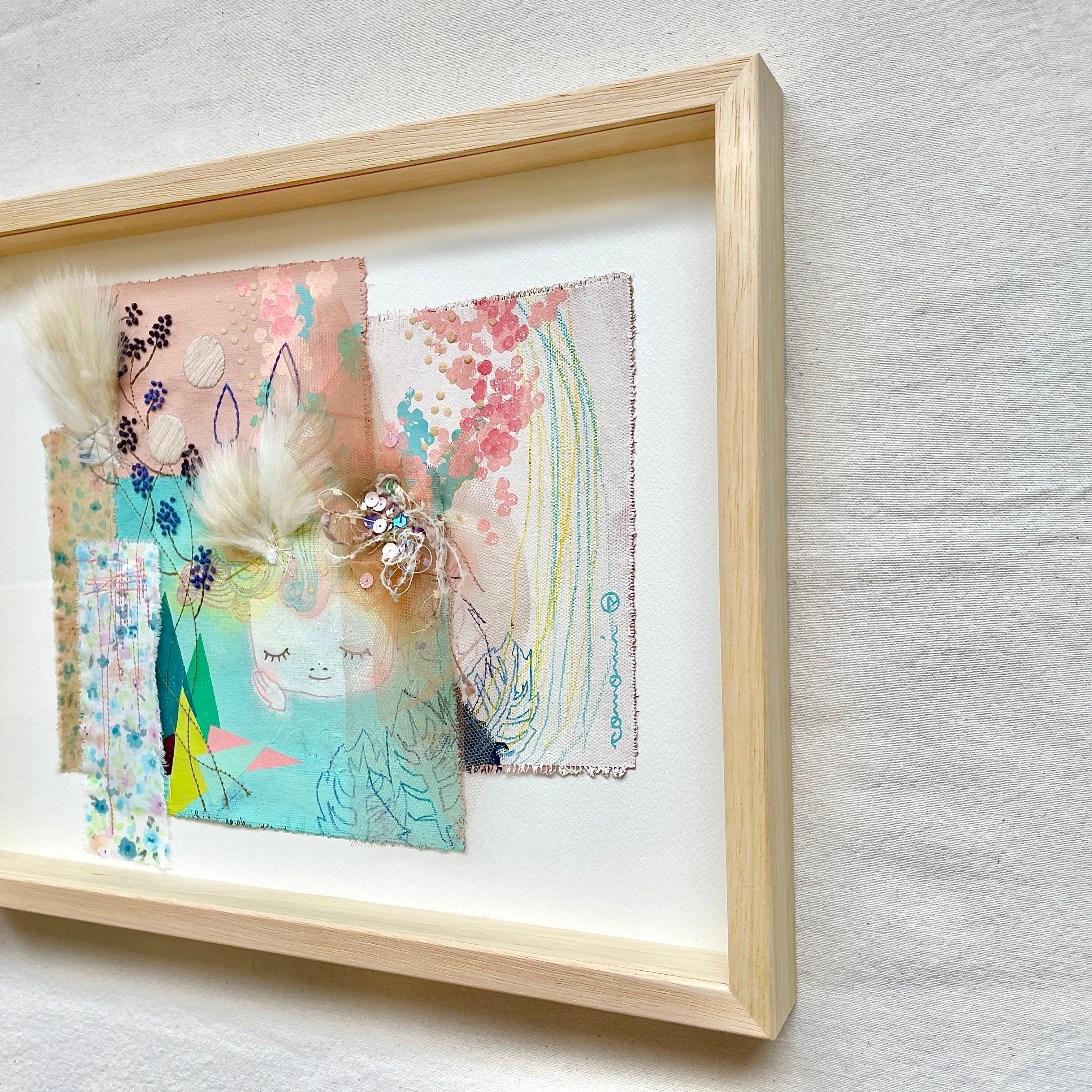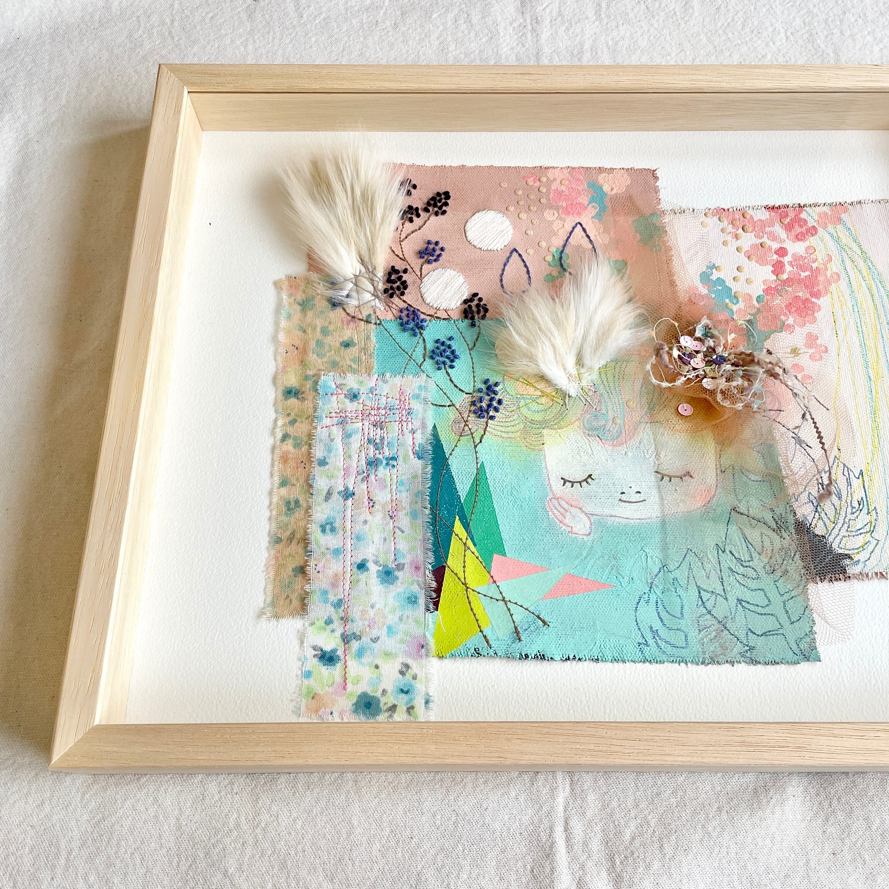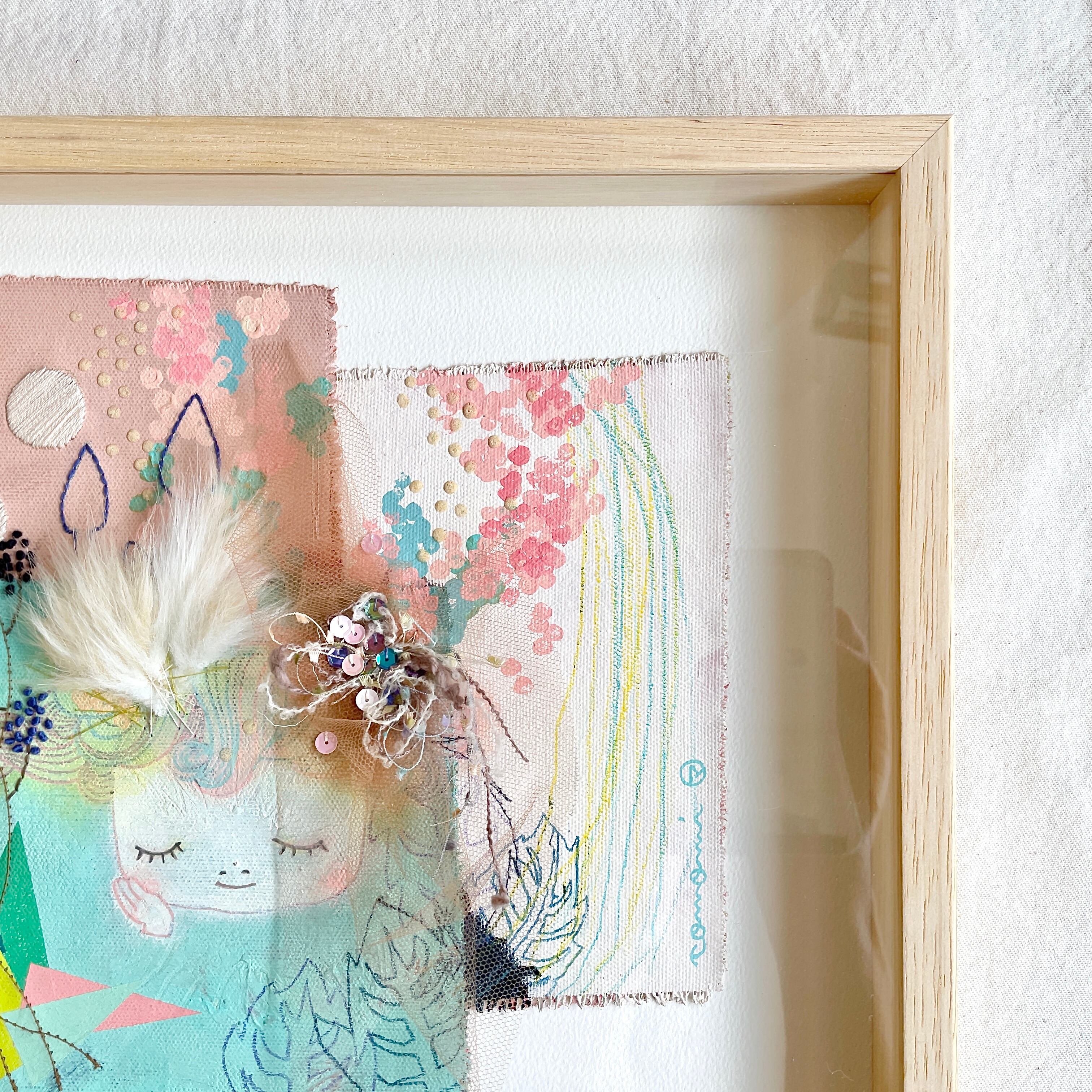 刺繍入り絵画「メザメノトキ。」(額付)